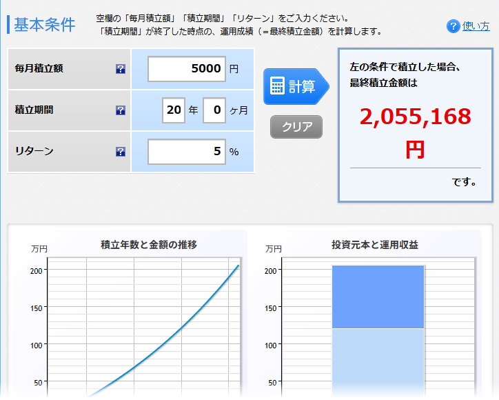 ここでは年利5%で計算した例を紹介します。