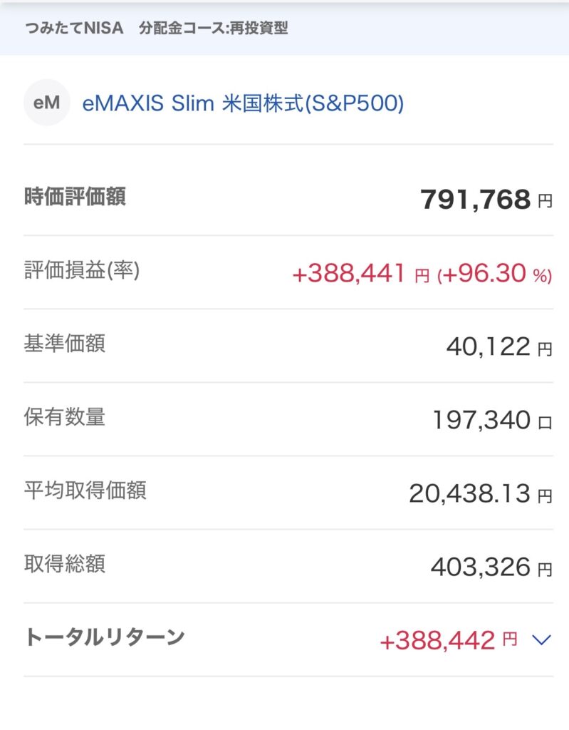 参考までにぼくの積み立てNISAの評価損益を載せておきます(約4年前~2年ほど積み立てていました)
