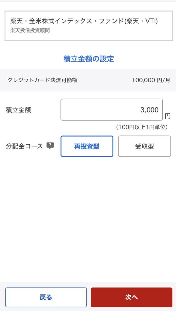 いよいよ積立設定ができます。